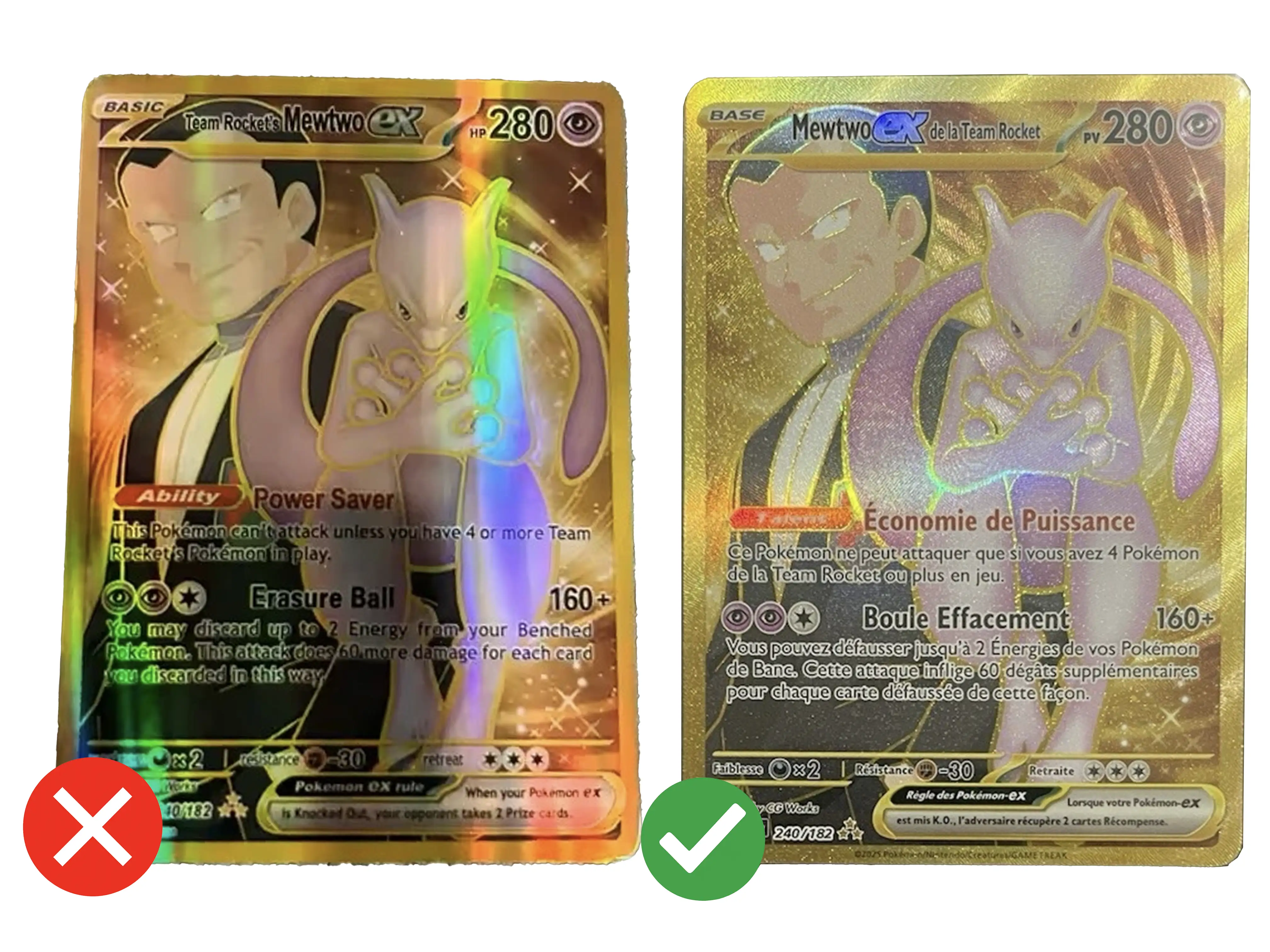 - Évitez les vendeurs proposant des centaines de cartes rares à petit prix — un signe classique de contrefaçon.